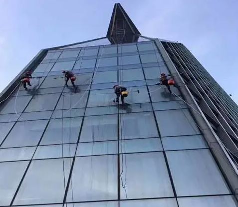 以下是我们的清洗流程:1.在楼顶选定安全固定点,确保牢固可靠,然后将吊绳和副绳(保险绳)分别固定在安全固定点的铆点和支架上。2.使用吊绳在吊板上的U型扣里打一个特殊结,并在板边栓上吊桶。我们会进行专人检查验收,确保绳子与建筑物墙角接触部位加有橡胶绳套或安全垫,以防磨损。3.将吊板、自锁器与吊绳紧密连接,确保安全可靠。4.操作人员必须系好安全带,并将自锁器与副绳(保险绳)牢固连接,以确保作业安全。5.操作人员将清洗剂、玻璃刮洗器、抹水器、抹布等备用工具装入吊桶中,然后坐在吊板上缓缓下降,呈悬挂状态。6.到达工作位置后,首先喷水湿润要清洗的部位,用玻璃刮洗器、抹水器、抹布等工具初步除去污垢。接着,将清洁剂均匀涂在玻璃或墙面上,稍后使用外墙刷进行擦拭。最后,用清水将清洁剂及污水冲洗干净。完成一个位置的清洁后,缓缓调整至下一个位置继续作业,直到一趟作业完成。7.降至地面后,我们会卸下水桶、吊板等工具,并准备开始下一趟高空作业。